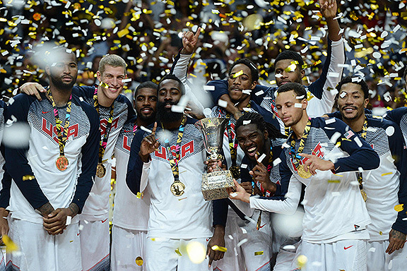 Team USA brought home the gold medal last week in the conclusion of the 2014 FIBA World Cup. They rampaged through the competition, winning every game by at least 20 points. Kyrie Irving and captain James Harden led the charge in the final game as Team USA took down Serbia 129-92. Rookie Derrick Rose led the squad with six dimes but was held scoreless. What’s that you say? Derrick Rose is a veteran NBA player? He was once an NBA MVP? My bad. Must have slipped my mind since he has been riding the pine with a swollen ego that past three seasons.