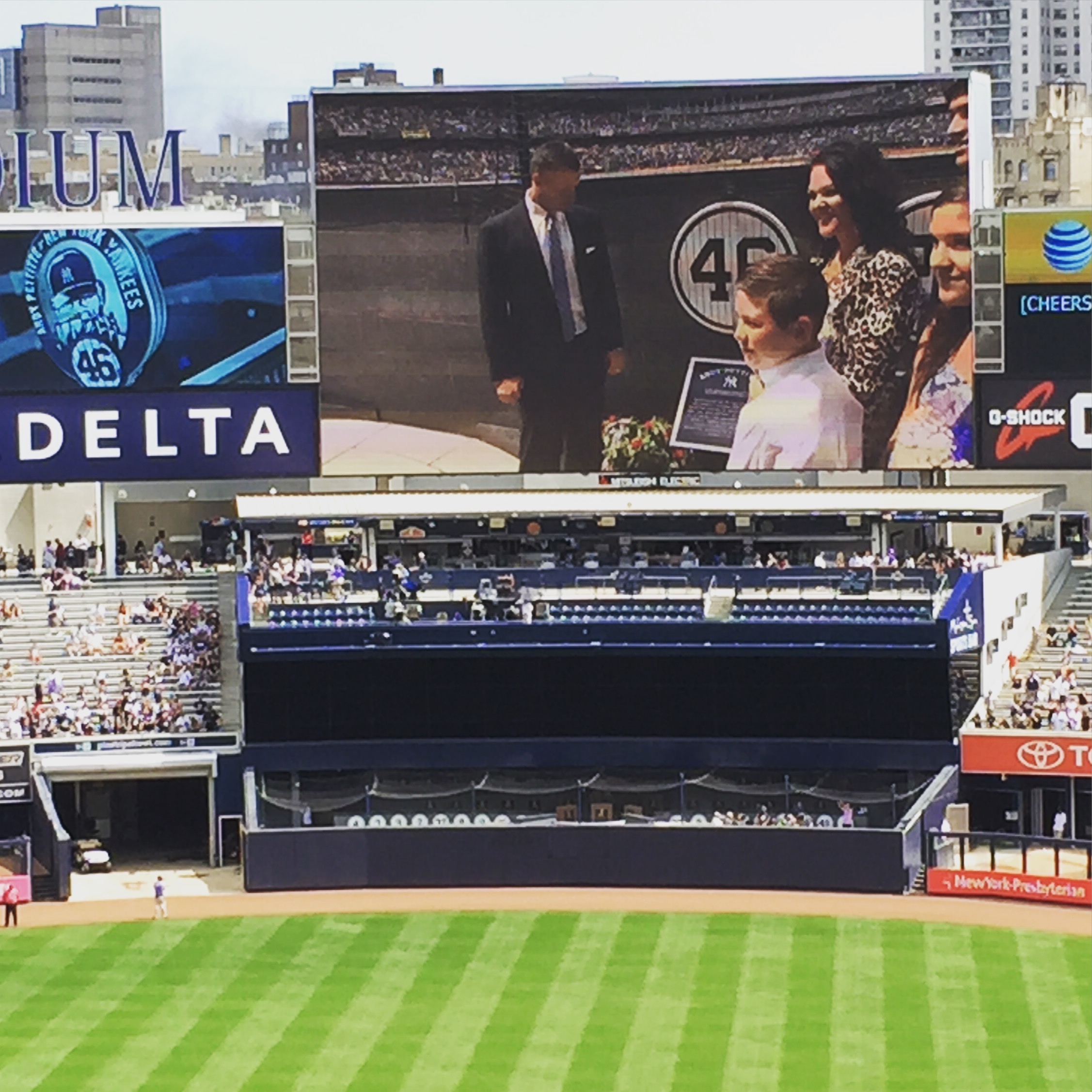It’s tough to see, I know, we were up kind of high, but you got names like Tino, Paulie, Godzilla, Brosius, Coney, Jorgie, Jeets, Mo, Bernie, Torre and Stick all assembled on the field. It was an incredible day for any Yankees fan who lived the emotional roller coaster of the 80s and 90s. This was a celebration of a team that had a nucleus of five homegrown stars surrounded by other talent that was brought in to make them seemingly invincible.