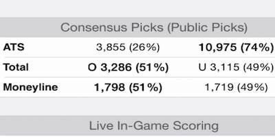 ** Betting Trend percentages are provided by iOdds, and are current as of Sunday 12:00AM EST **