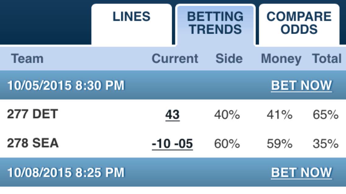 Bottomline, the 60% of bets on SEAHAWKS -10(-105) was significantly more money than that 59% taking the SEAHAWKS -525. So, looking at the side and moneyline in this Monday night game, you focus all your energy on the side action to get an accurate pulse on the situation.