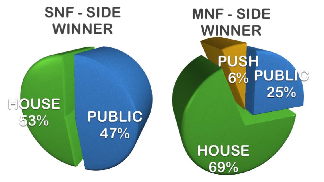 As you can see, the public has hung tough with The House in SNF. Although, 7-8 is still below .500, and that record won’t come close to winning you any cash.