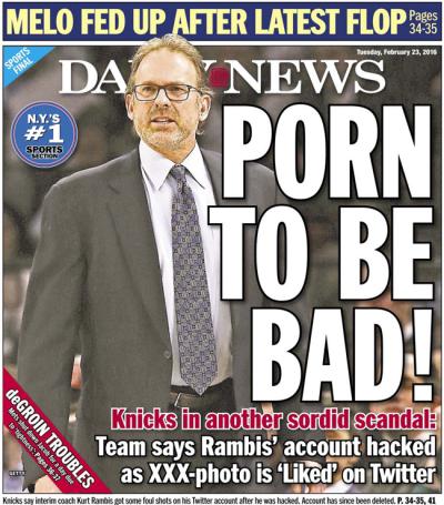 New interim head coach Kurt Rambis made the cover of the Daily News. Why you ask? Rambis, from his Twitter account, liked a pornographic picture.