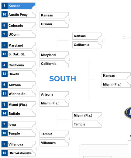 Kansas is the team to beat in the South Region. I really like Melo Trimble’s name and Maryland is good, but I think Cal is also a tough opponent trying to showcase their talents to the world.