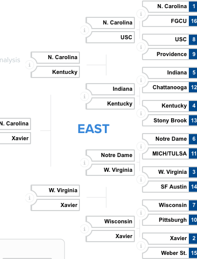 Kentucky sneaking as a four seed is always dangerous as well, but I don’t think they have enough this year to pull off the upset against UNC this year.