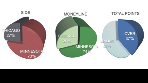We ride with Vegas on both Primetime Total Points, and if the people jump on the BEARS +4.5(-115), then we take VIKINGS -4.5(-105), all while sticking with the Minnesota Moneyline regardless.