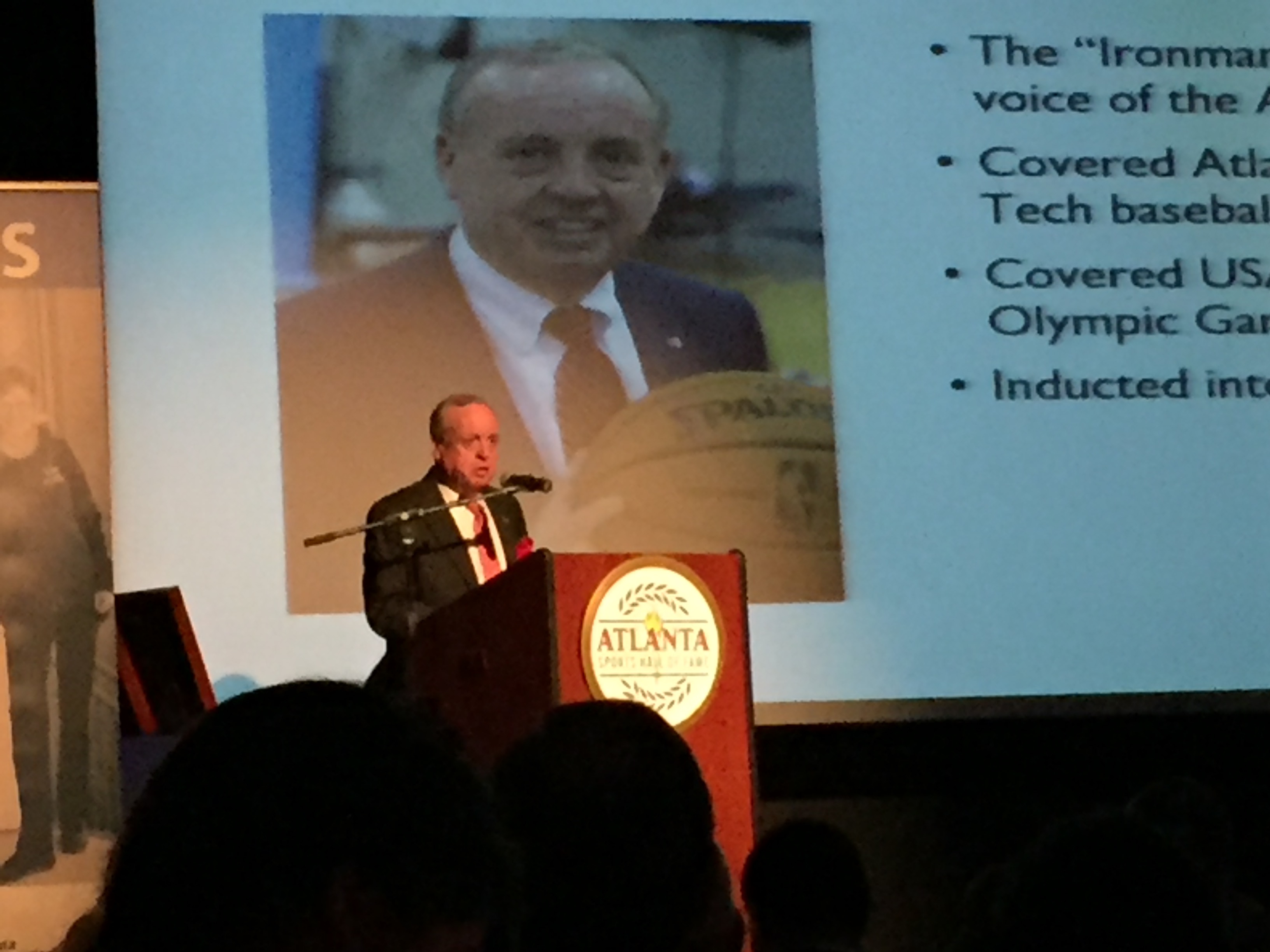 Bob Reinhart stole the show. His accolades were ridiculous as he coached high school (Decatur HS), college (Georgia State) and the pro (Atlanta Hawks) basketball in his own city. Now a scout for the Miami Heat, he could easily turn to stand up comedy after having the room in hysterics for most of his speech.